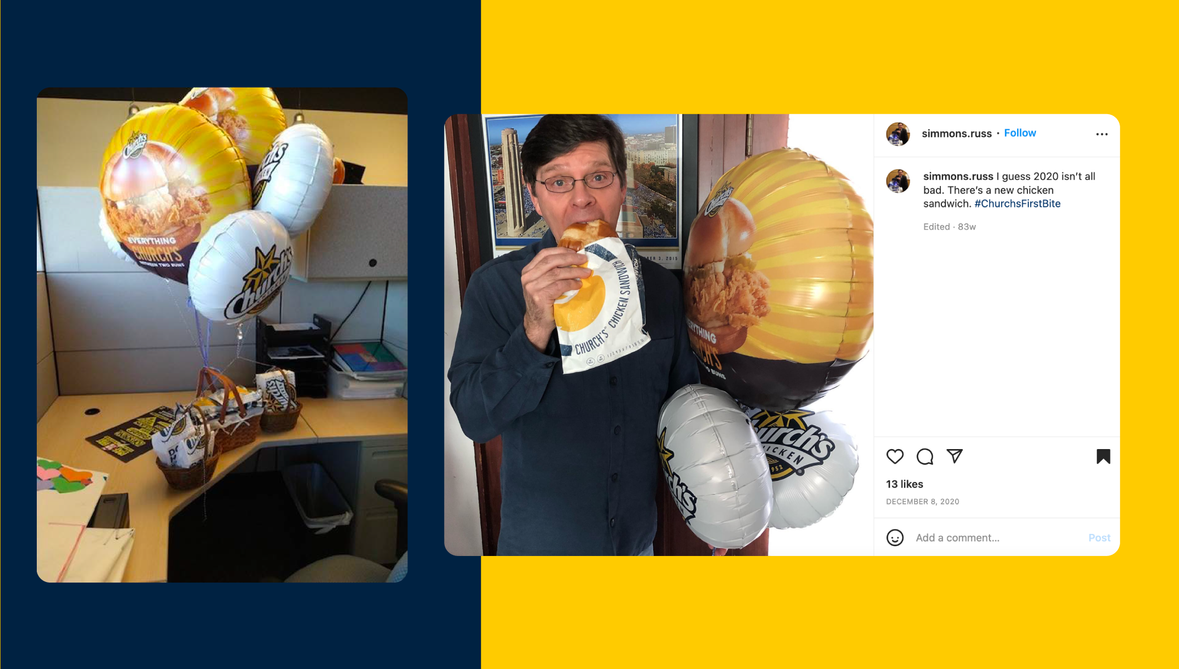 As the race for the best chicken sandwich forges on, Church’s partnered with BCW to deliver its new chicken sandwich to targeted radio & broadcast media personalities and local influencers. These drops were executed to drive awareness and sampling of the new Church’s Chicken Sandwich through on-air, online and social coverage. As part of our work, the team collaborated on this festive press package design including branded balloons and sticker pack in a wicker basket to drive home Church's down home theme and encourage social sharing.